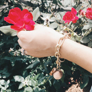 A gold chained bracelet.